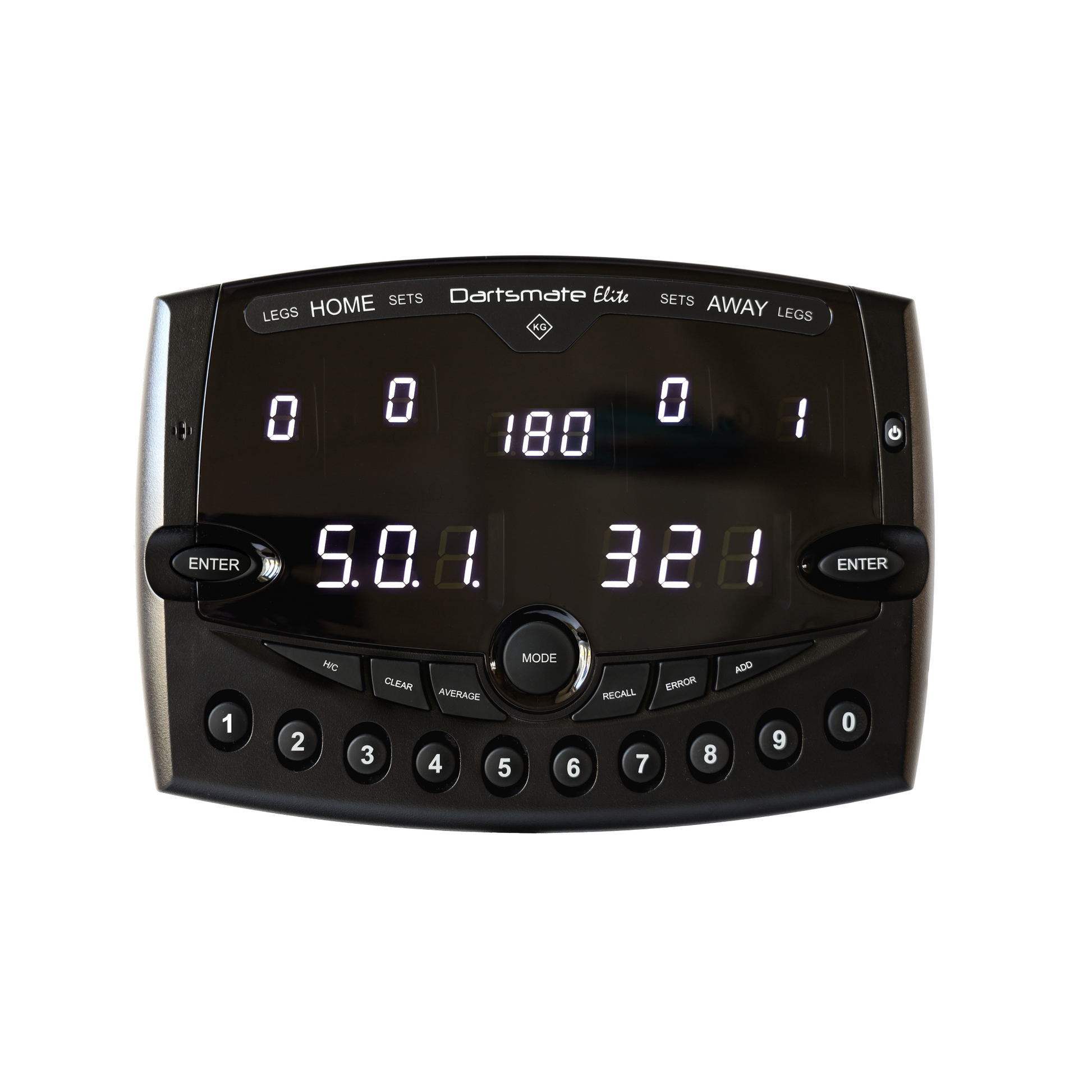 - Displays for Score, Total, Legs and Sets.