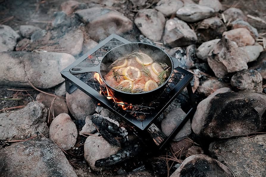 - Legs lock securely in place to form a stable cooking platform
